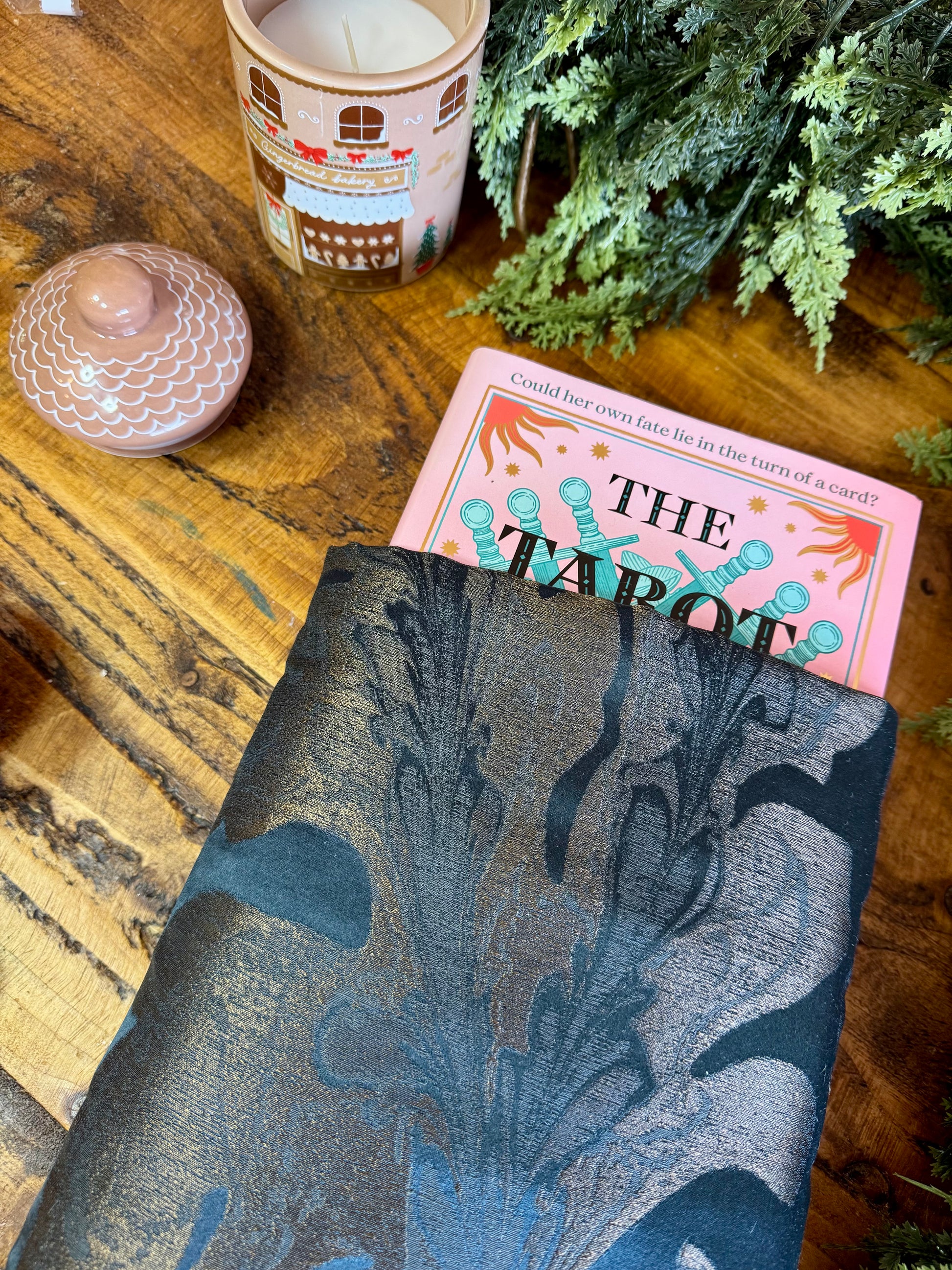 This book bed has been made using fabric from a fabric sample book. It has wadding to protect the contents within the book bed and is lined using reclaimed fabric.