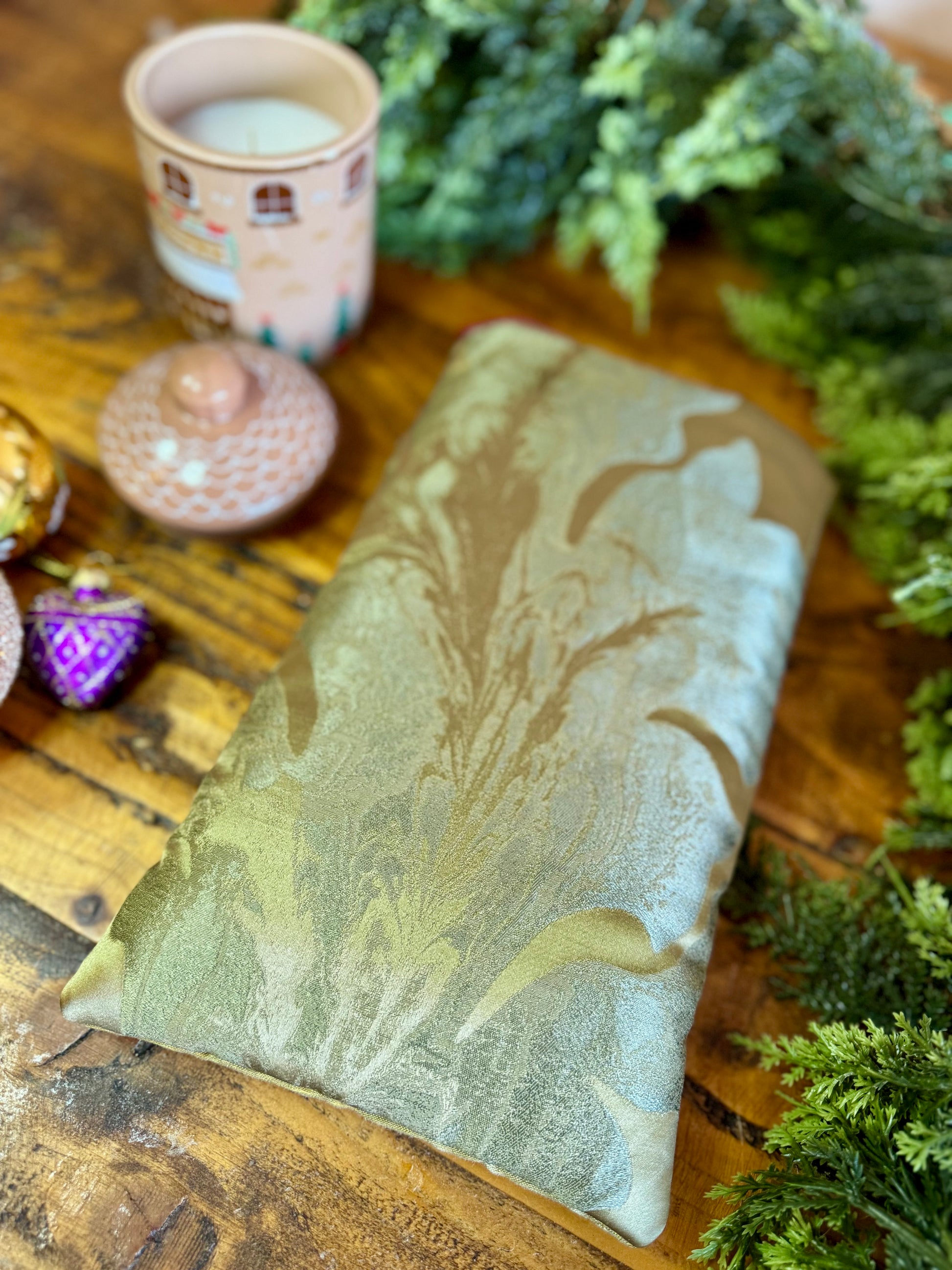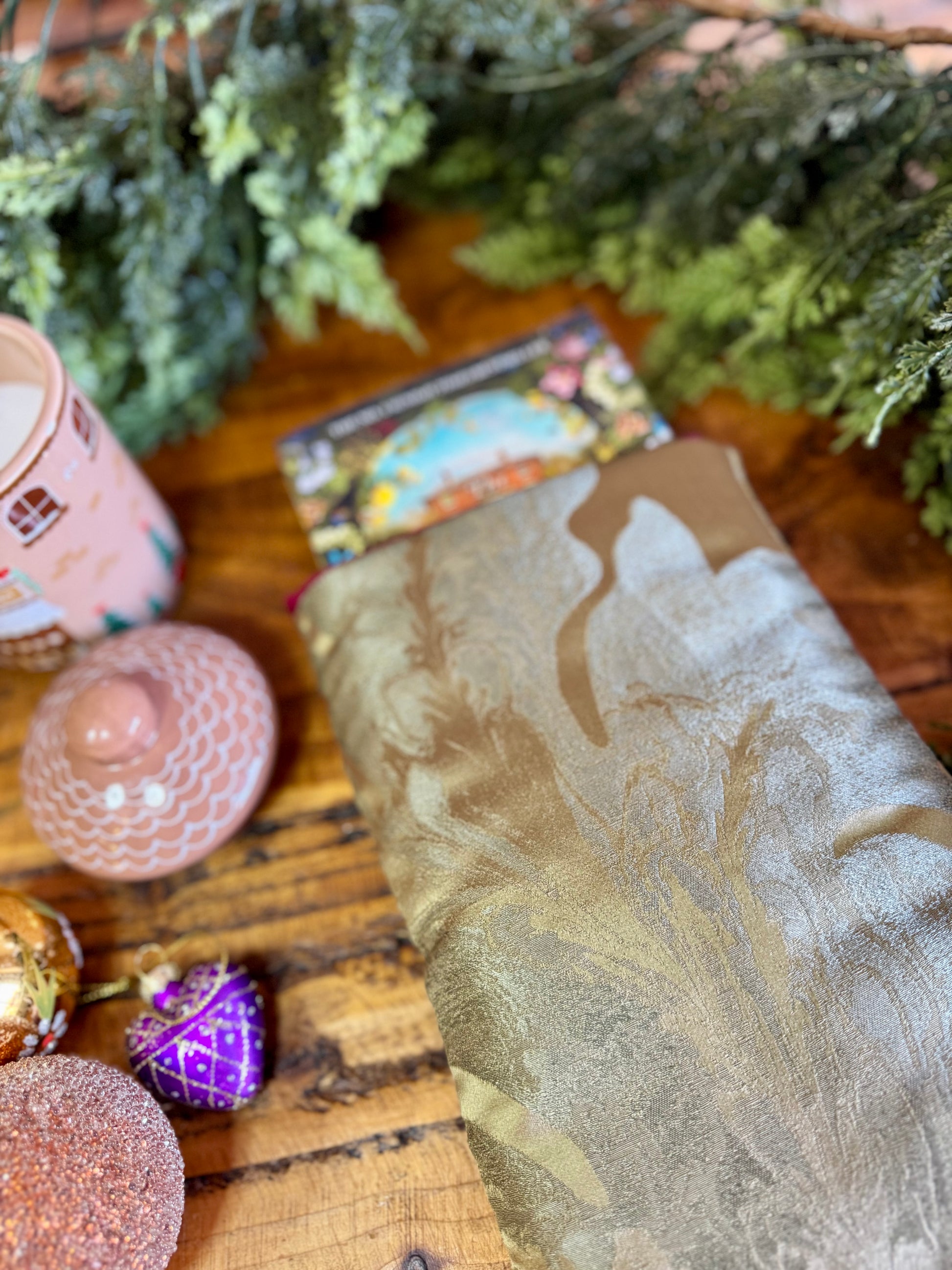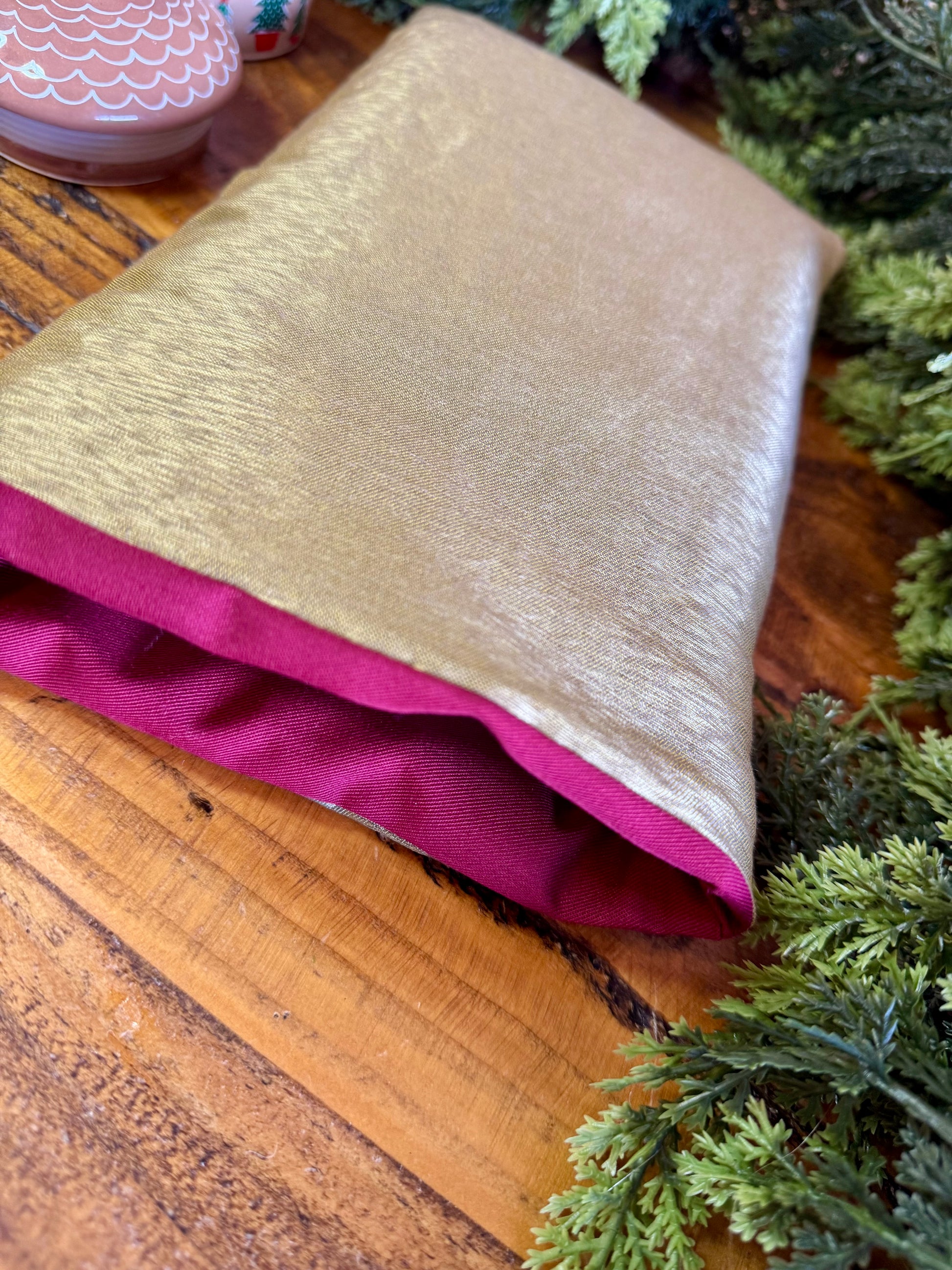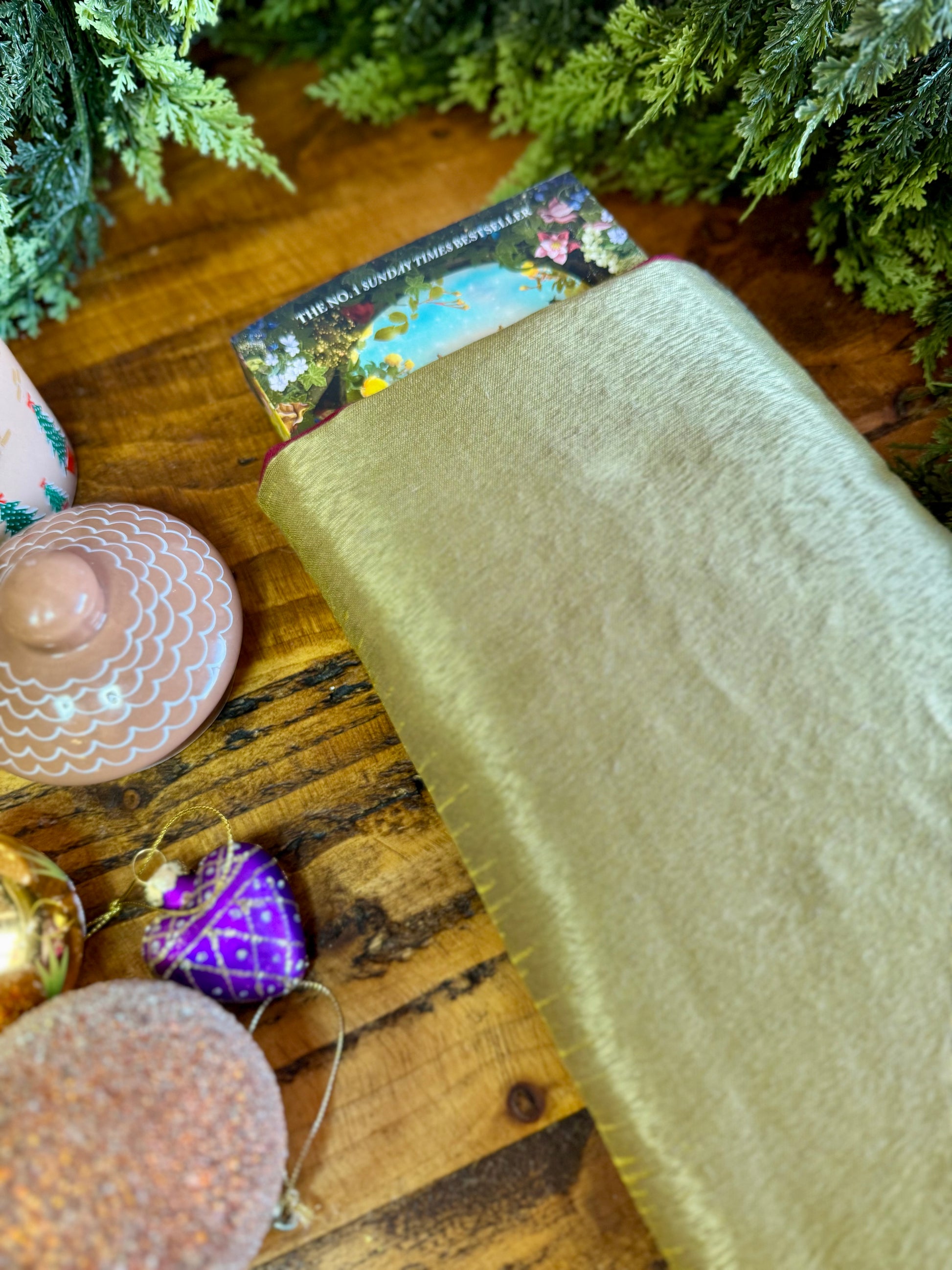 This book bed has been made using fabric from a fabric sample book. It has wadding to protect the contents within the book bed and is lined using reclaimed fabric.