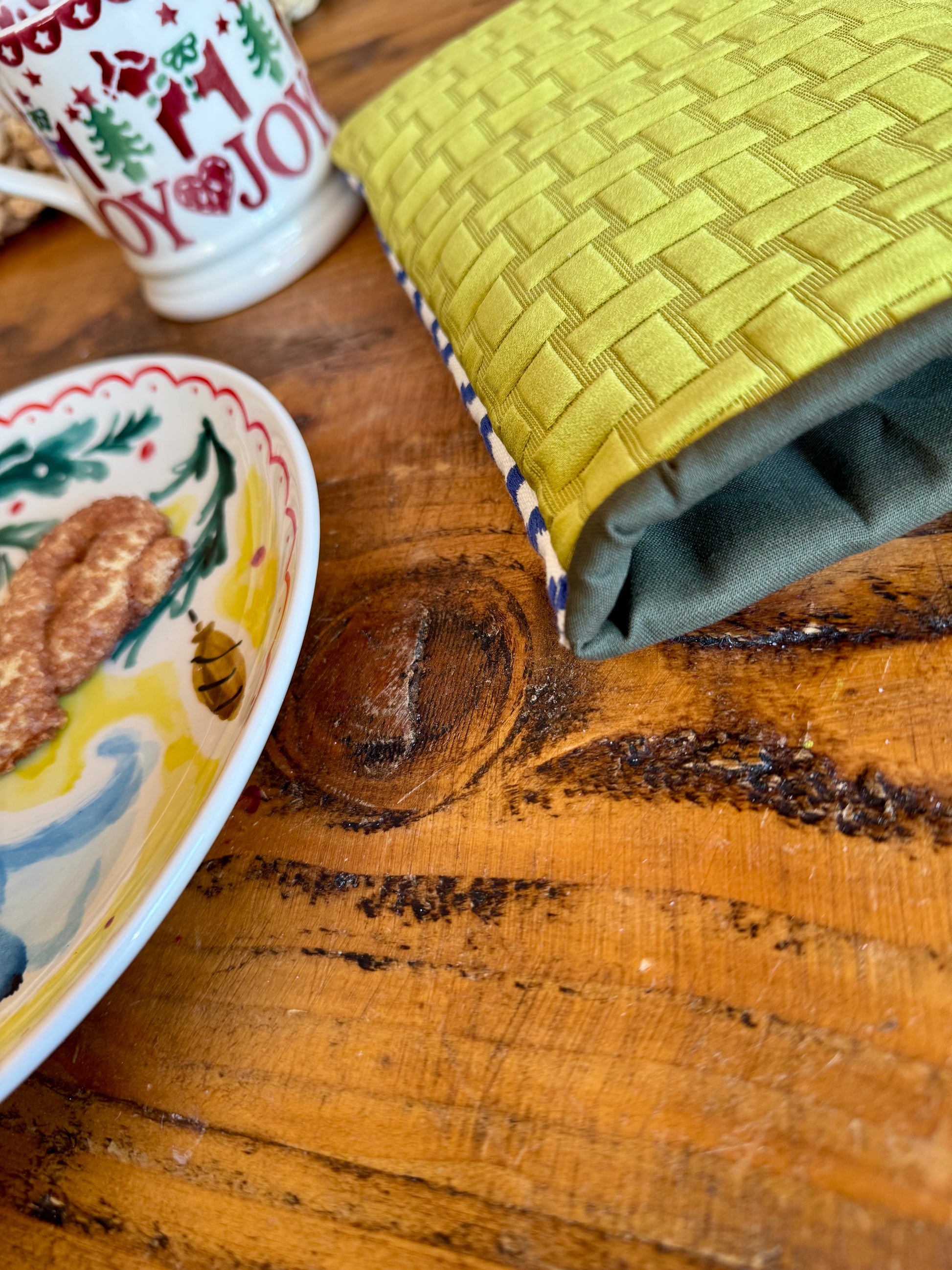 It has been lined with reclaimed fabric and also has wadding inside the bed to keep your reading material fully protected.
