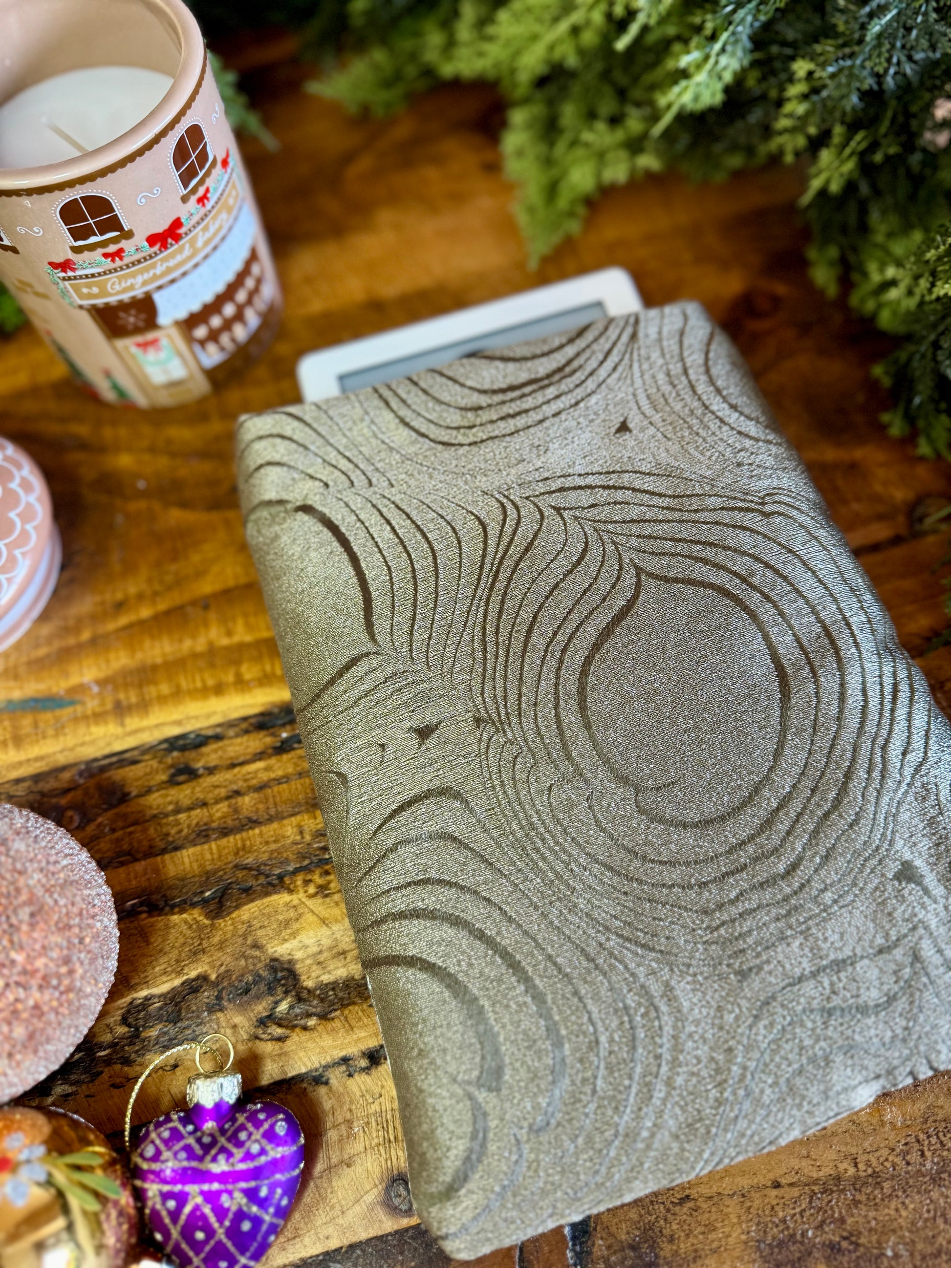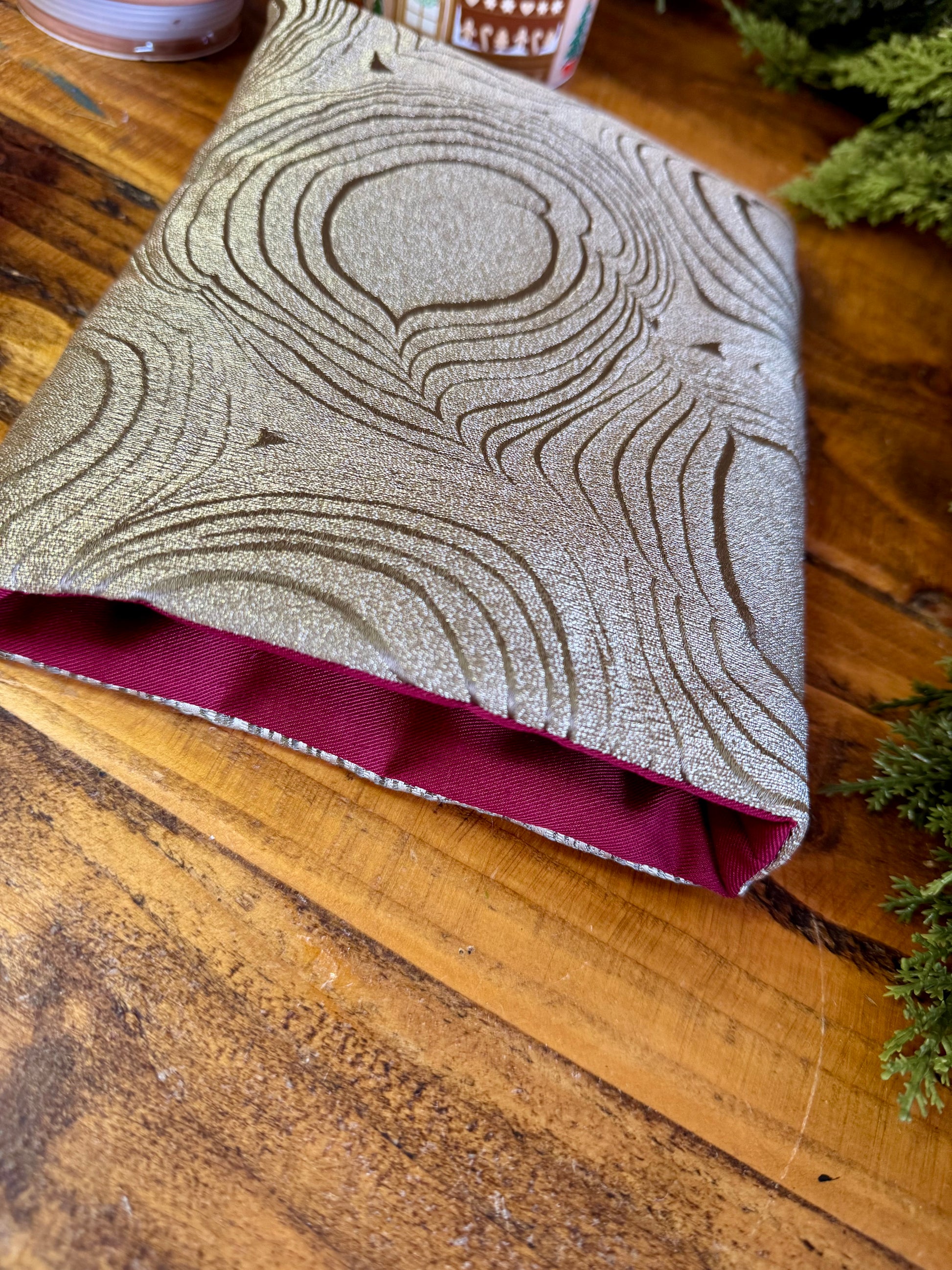 This book bed has been made using fabric from a fabric sample book. It has wadding to protect the contents within the book bed and is lined using reclaimed fabric.