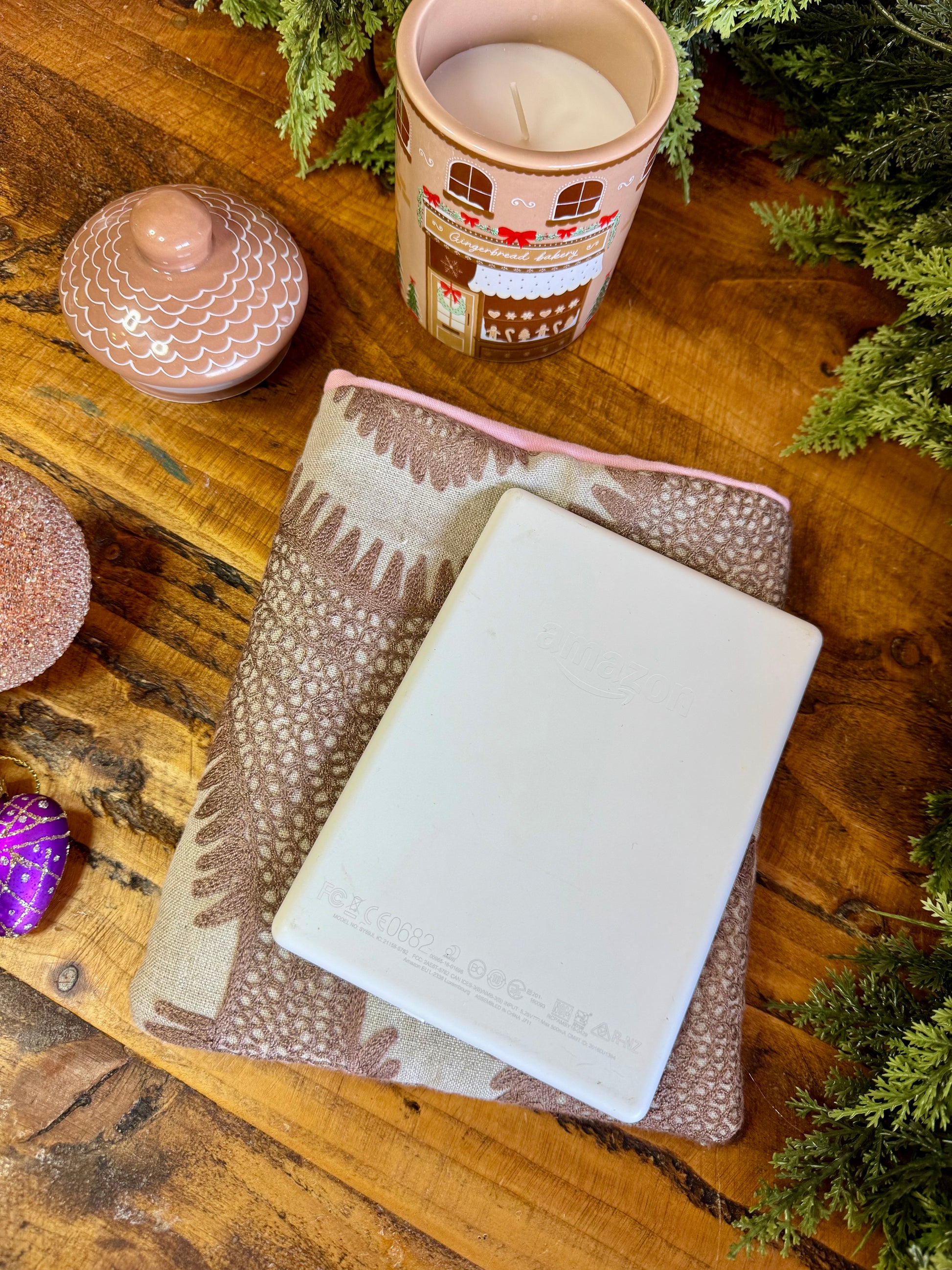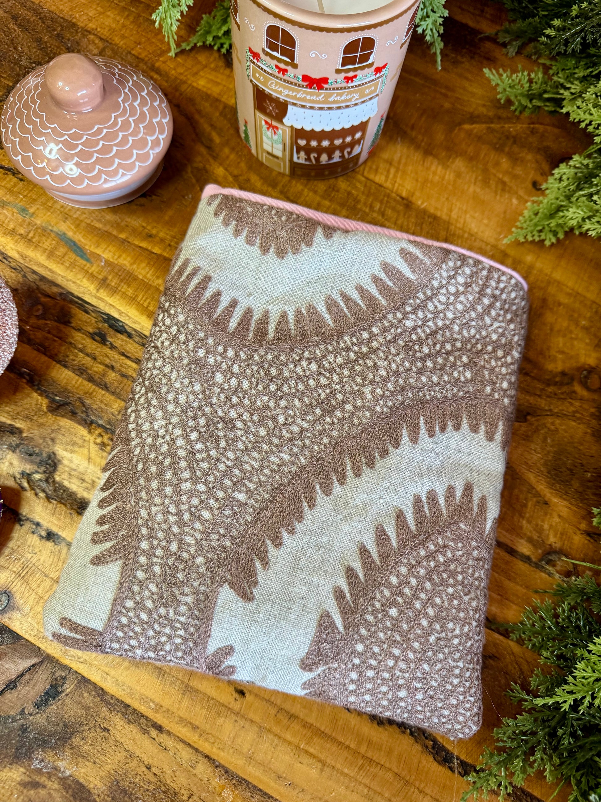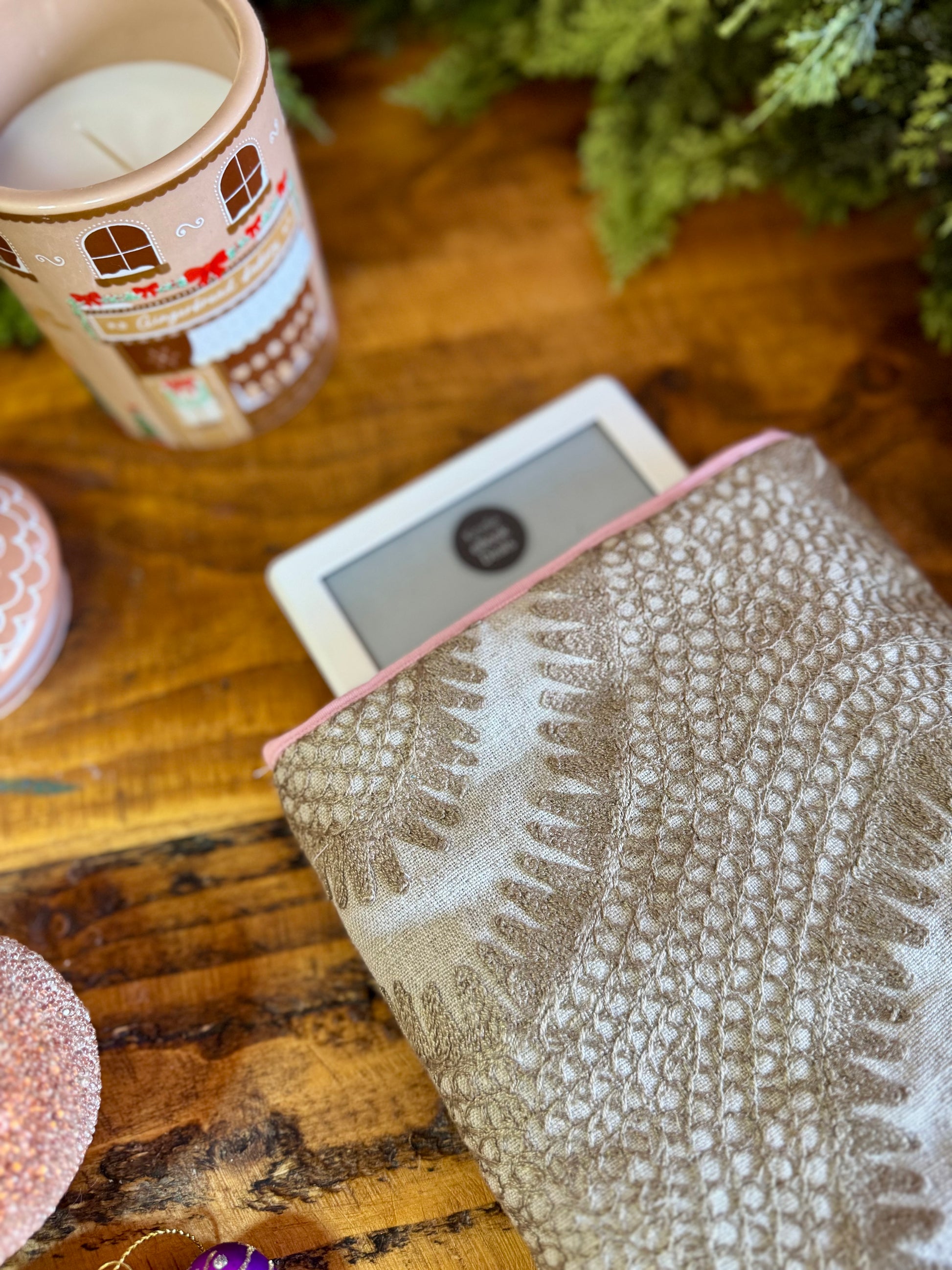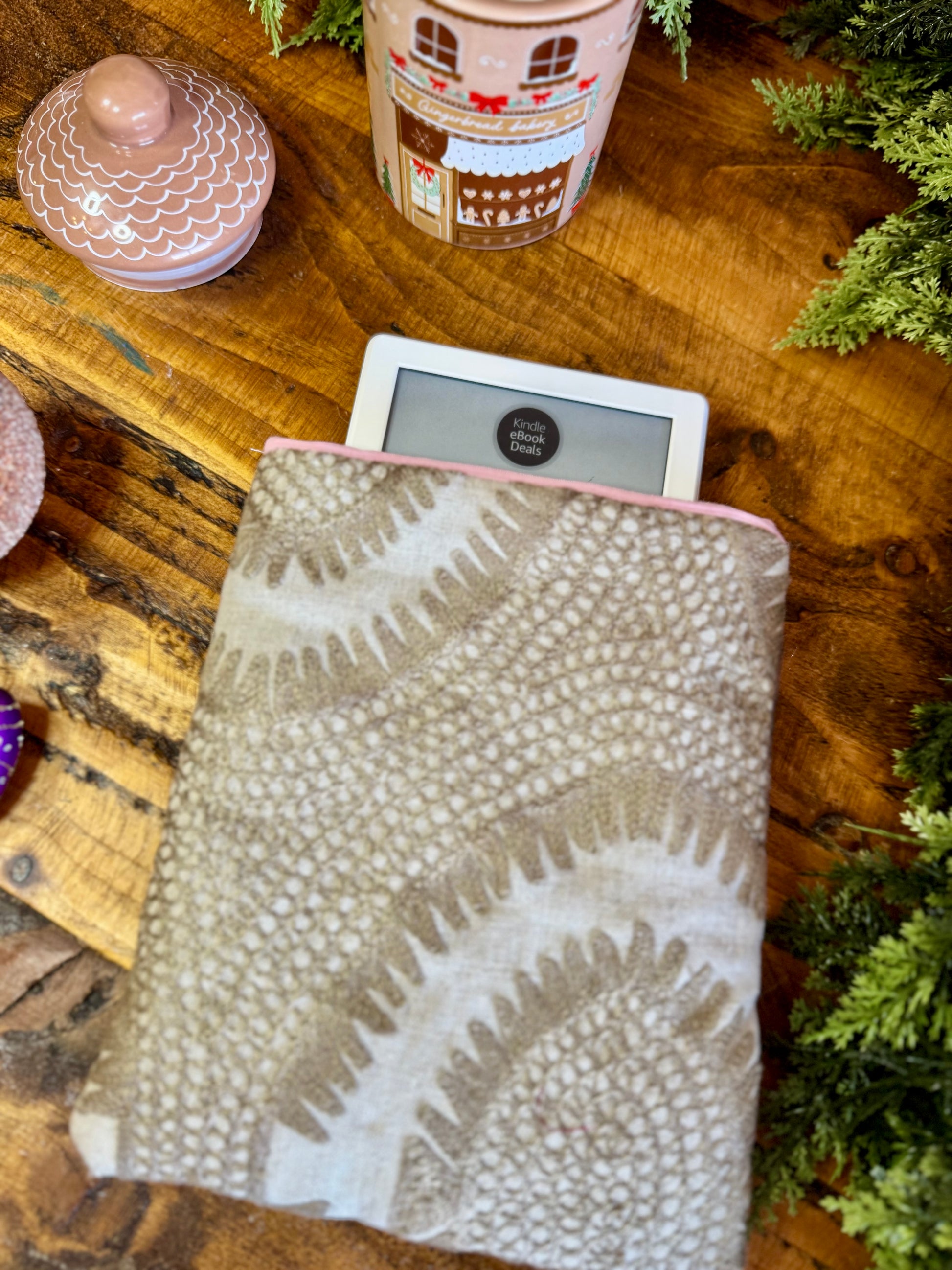 This book bed has been made using fabric from a fabric sample book. It has wadding to protect the contents within the book bed and is lined using reclaimed fabric.