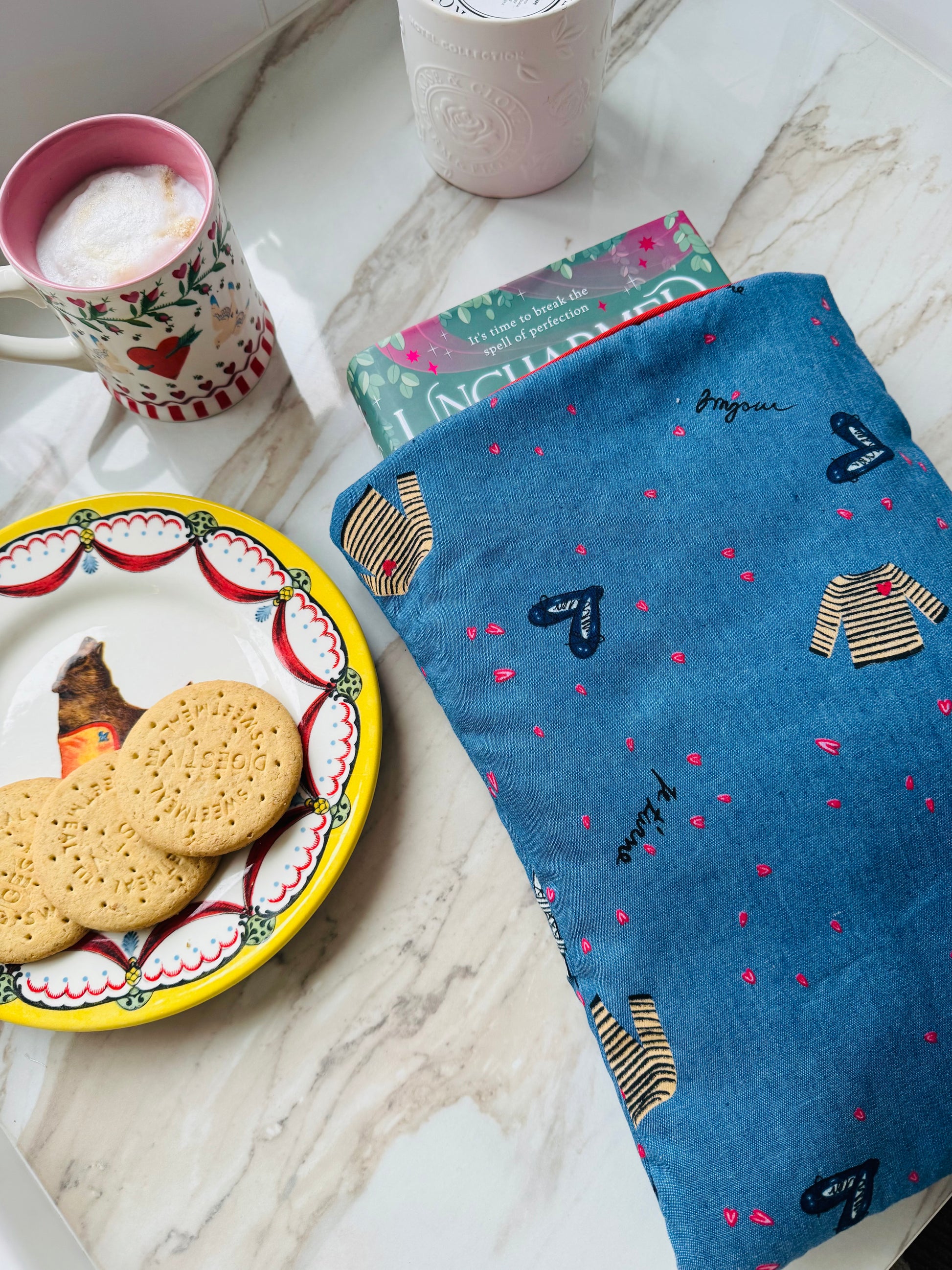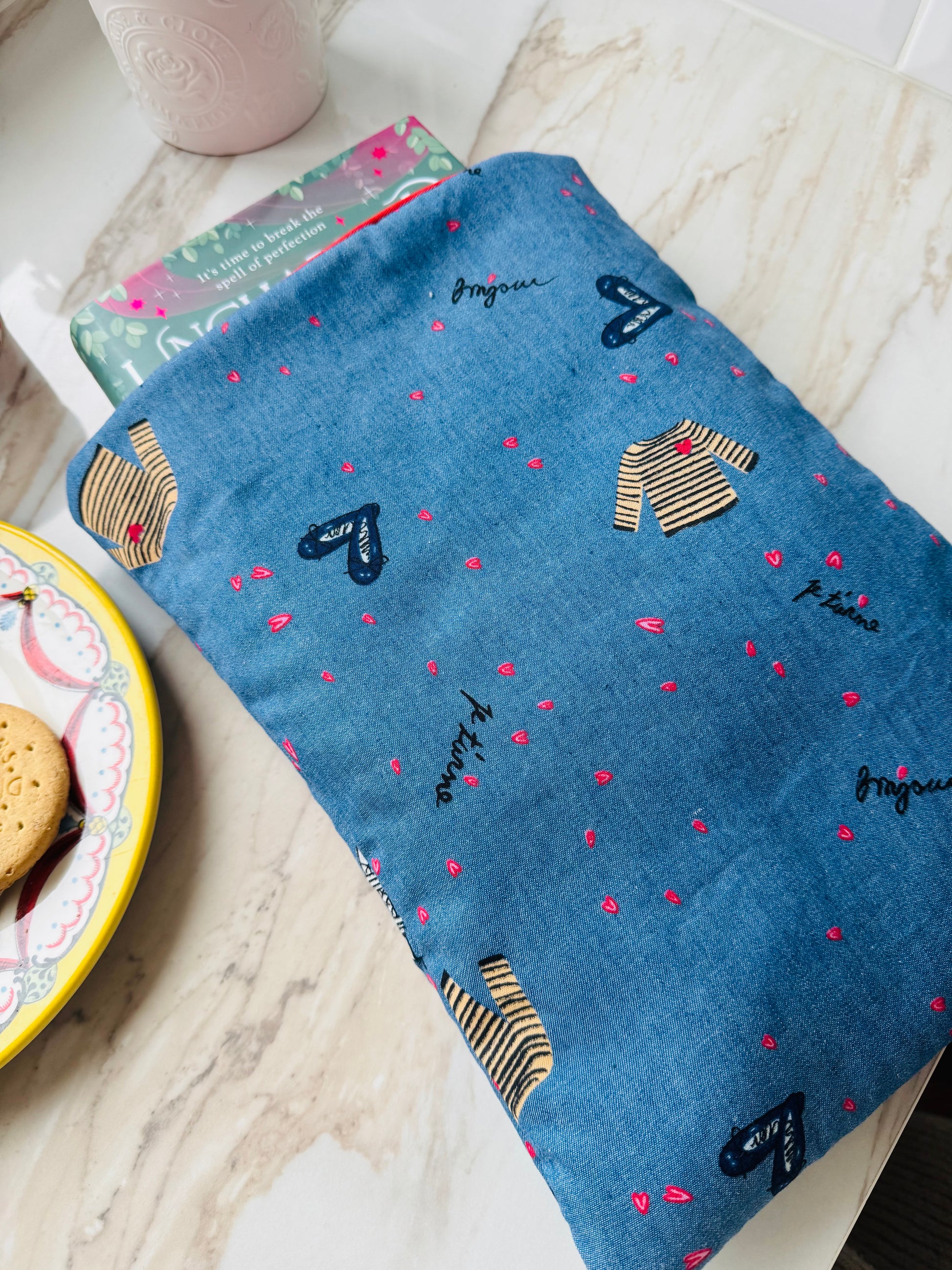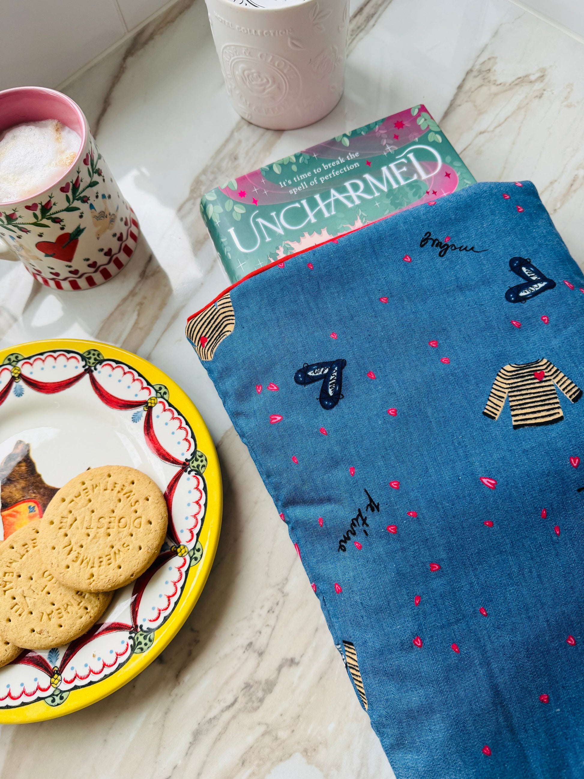 This book bed has been handmade using remnant cotton fabric, medium-weight wadding & is lined with a heavy vintage cotton fabric.