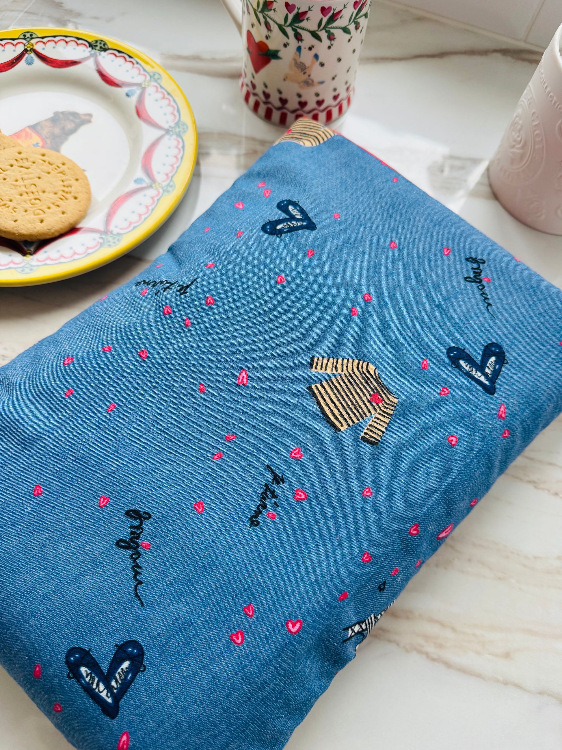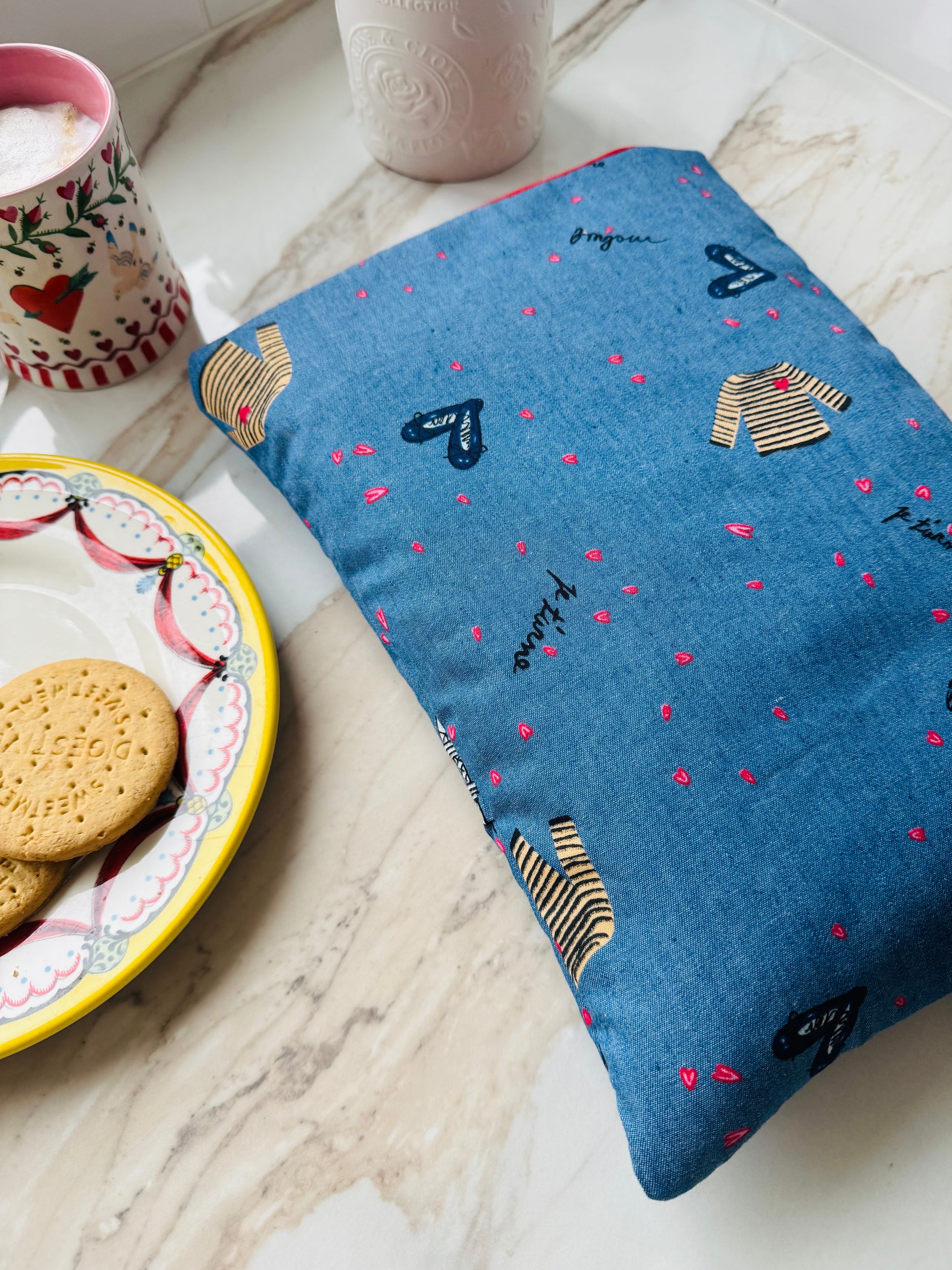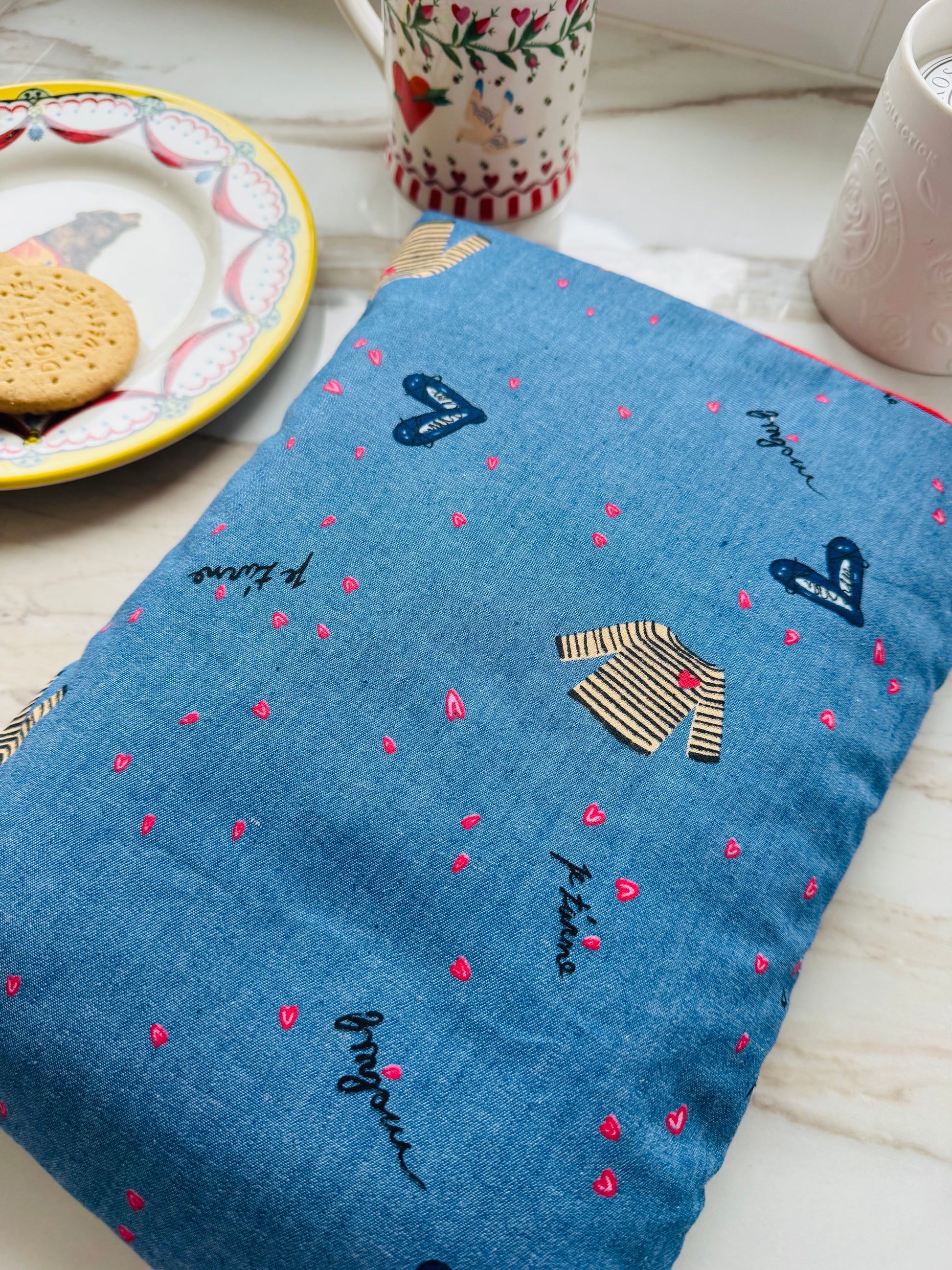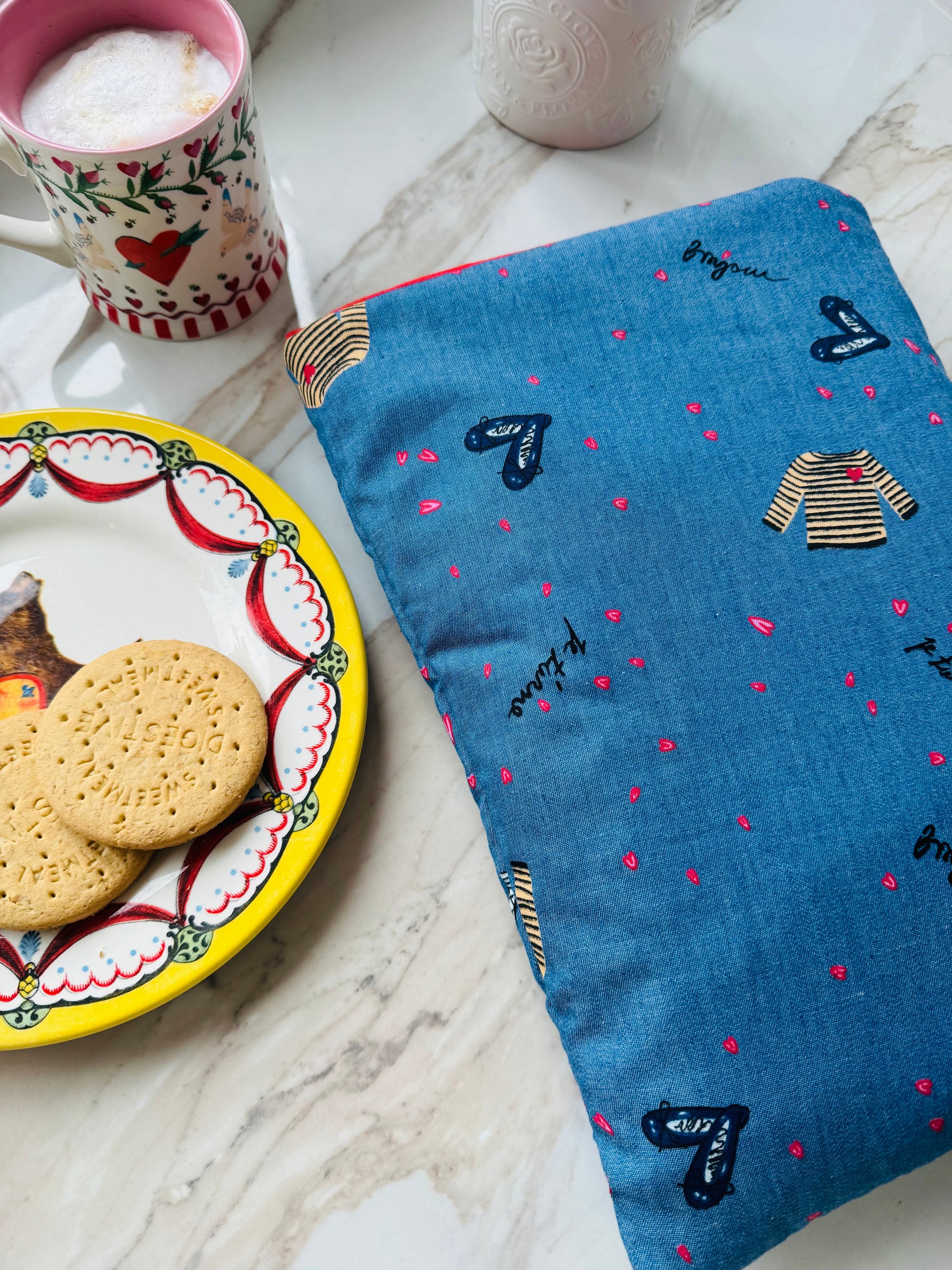This book bed has been handmade using remnant cotton fabric, medium-weight wadding & is lined with a heavy vintage cotton fabric.