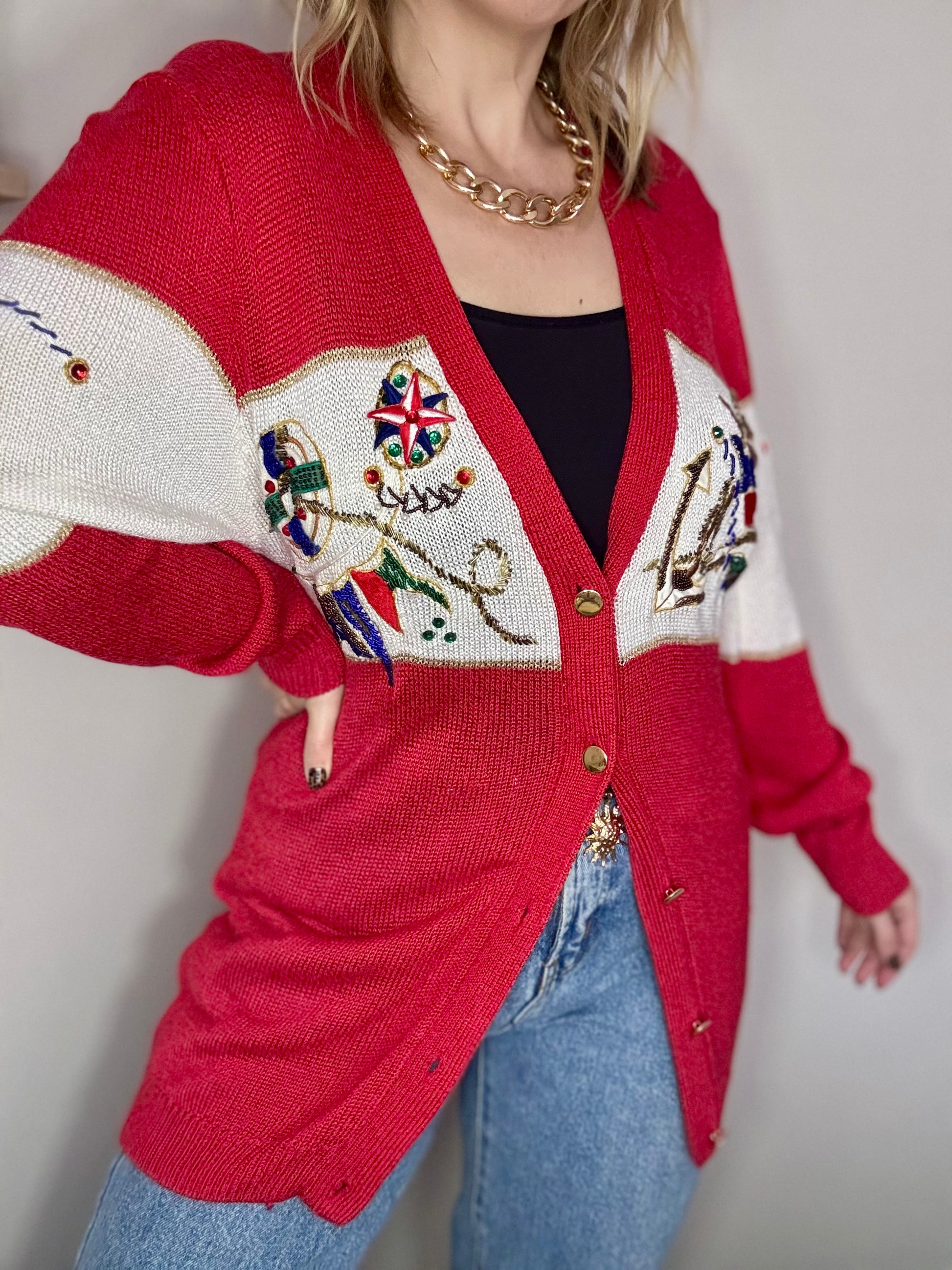 It is a ‘carthago’ vintage piece with beadwork and appliqué details. The fabric composition is 64% viscose and 36% cotton.