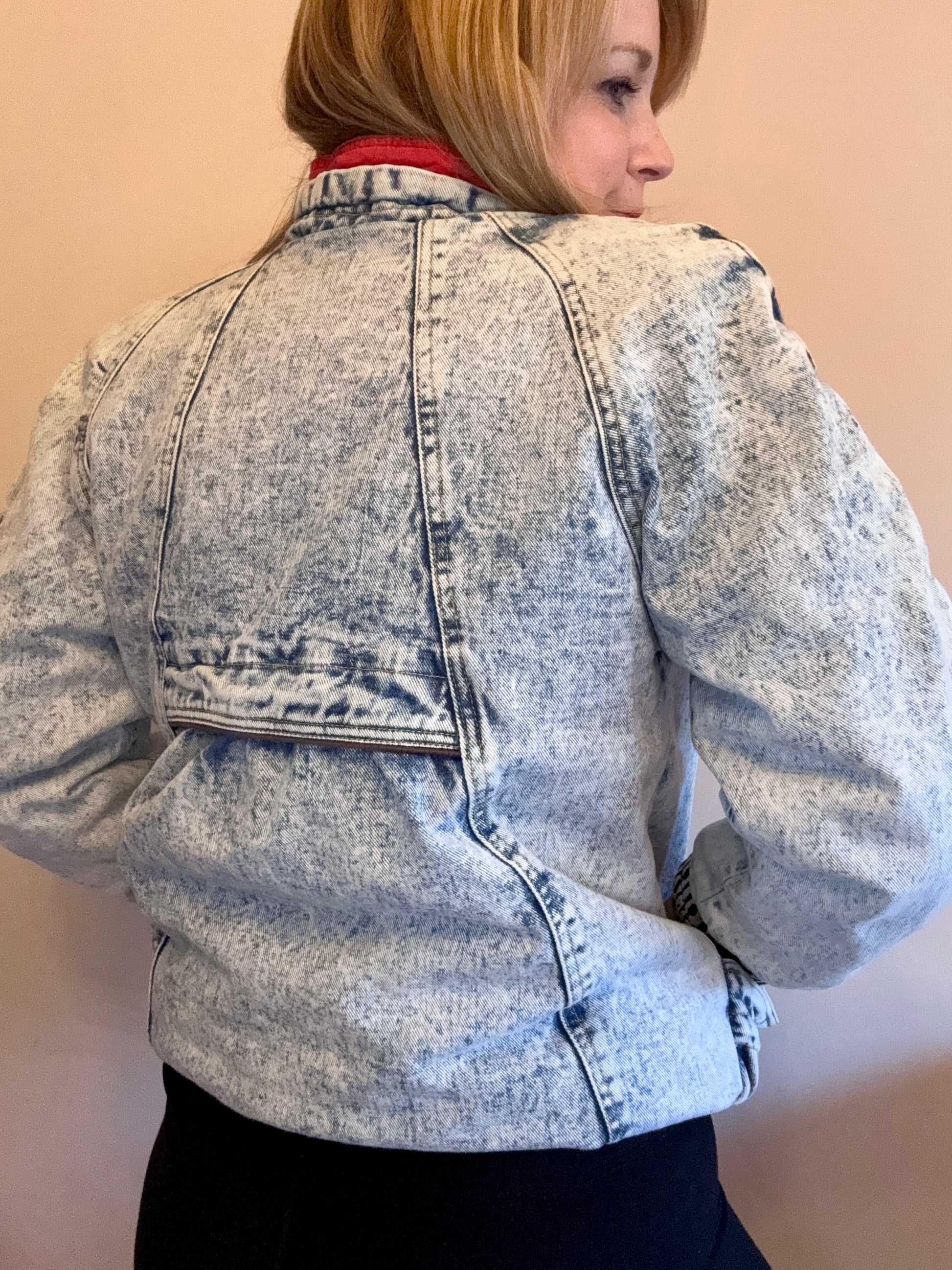 This is a very heavy vintage denim bomber jacket which is fully lined with pockets.