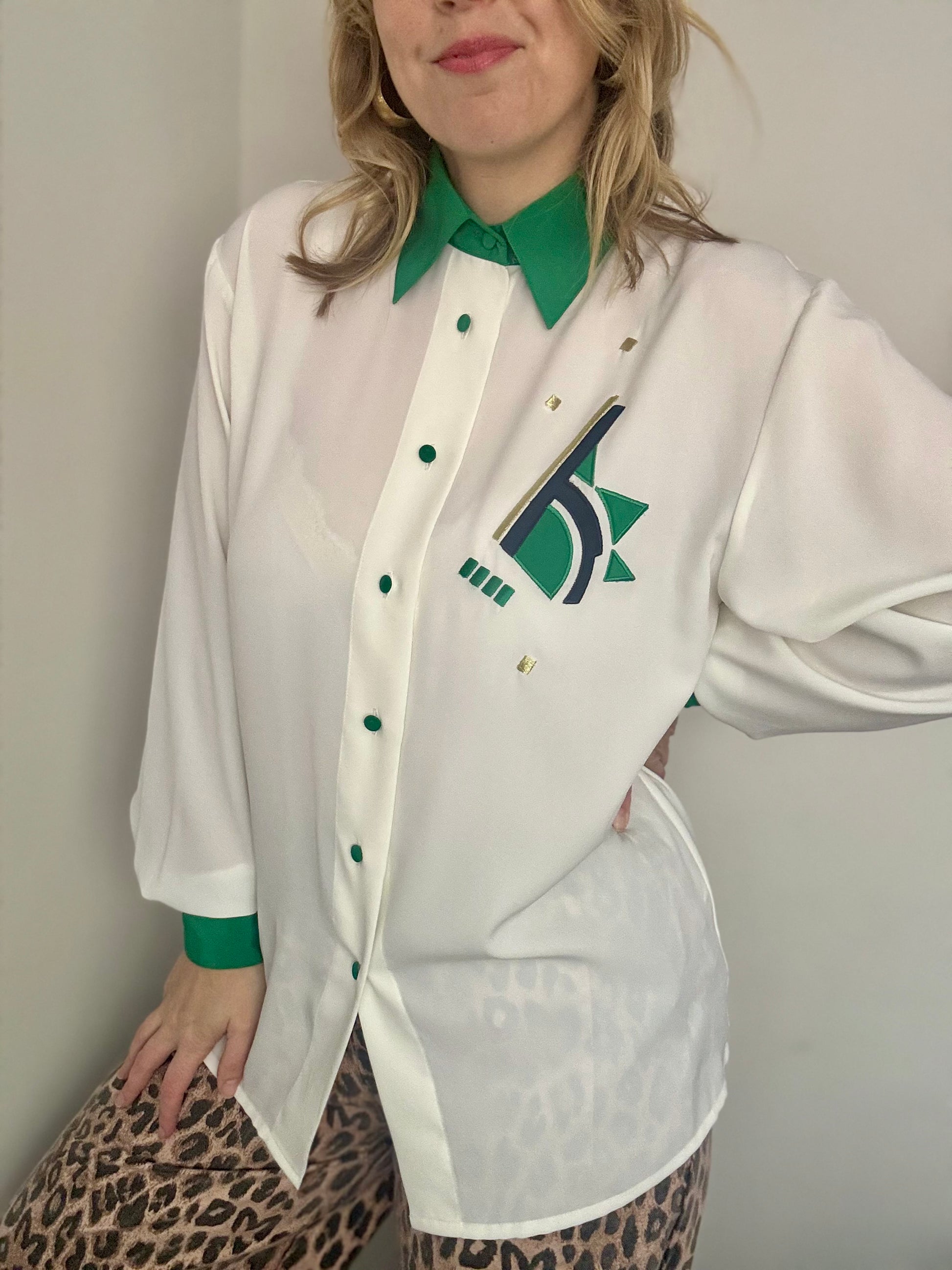 Vintage ‘Green collar & cuffs’ vintage blouse