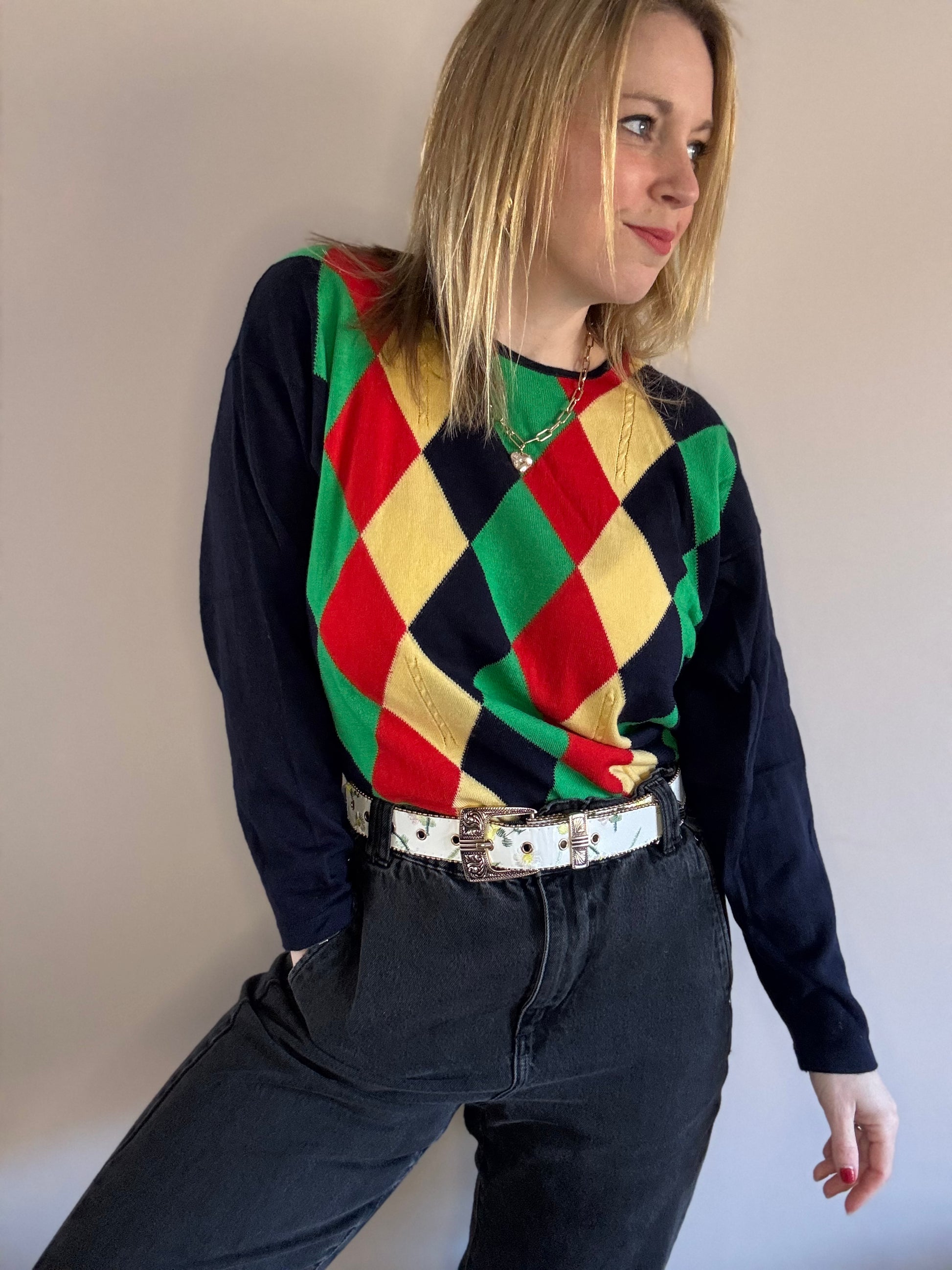 The most amazing harlequin print which can be worn longer in length or tucked in.